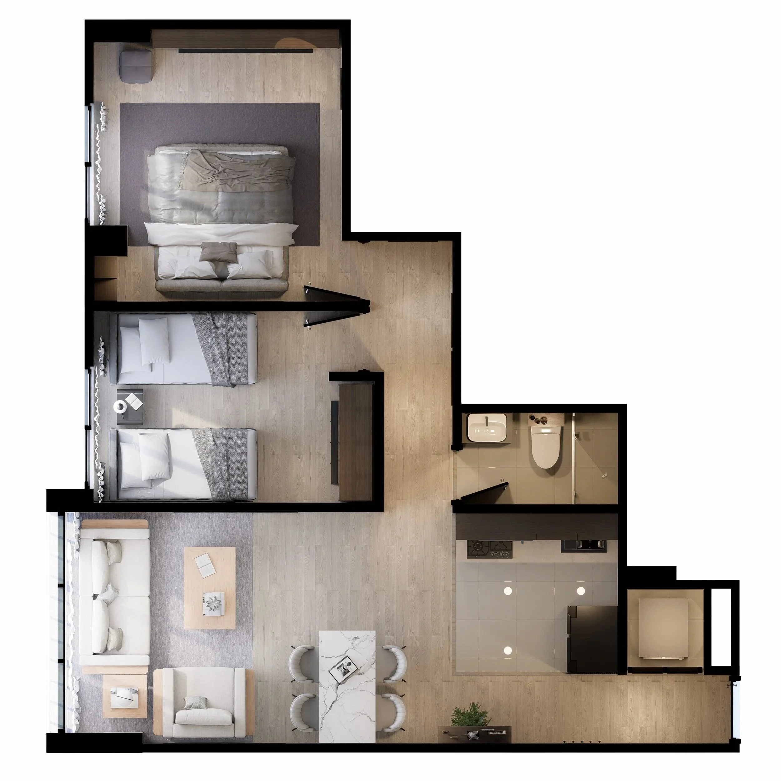 Apartamentos de Dos Alcobas con vista interior